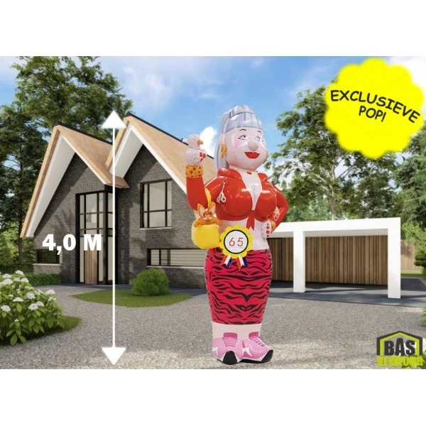 Standaard leveren wij bij dit feestfiguur een leeftijd banner van 50 jaar mee. Met de tijd mee zijn de opblaasfiguren ook populair voor andere leeftijden! Denk hierbij aan leeftijden als 18, 30, 40, 50, 60 en 65 jaar. Ook voor deze leeftijden hebben wij een leeftijdsbanner voor u beschikbaar. Wanneer u een andere leeftijd nodig hebt, kunt u dit eenvoudig aangeven bij 'opmerkingen' bij uw reservering.